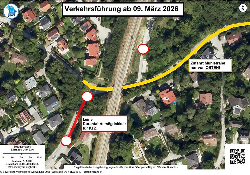 Am darauffolgenden Wochenende - Samstag, den 7. März und Sonntag, den 8. März 2026 - wird die Durchfahrt ermöglicht (aufgrund der Kommunalwahl in Bayern am Sonntag, den 8. März 2026).